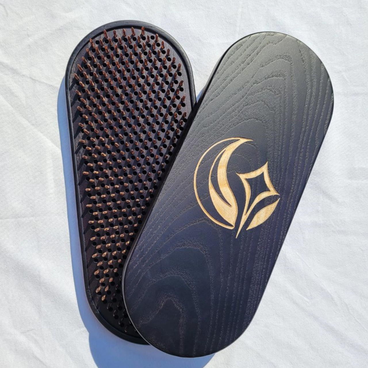Supercharge your Yoga practice and unlock ancient wisdom with our handcrafted Sadhu board. This traditional tool features a bed of nails designed to stimulate reflex points on your feet, promoting a range of benefits: